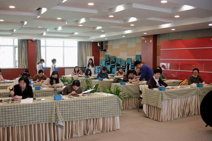 在妇女节来临之际,总部工会组织全体女职工开展手工活动。参加活动的女职工们用自己灵巧的双手现场制作美丽花朵,并手绘包装袋。在一片欢笑声中,大家用自己亲手制作的一朵朵手工玫瑰花组成了一个心形的图案,图案的中间是集团公司的LOGO图案,体现了女职工们心向北化,表达了大家对集团的祝福。
