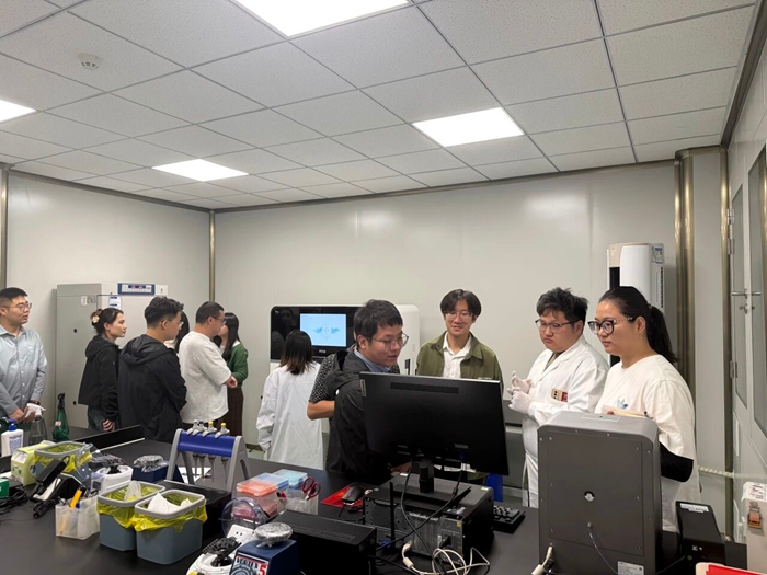 团员青年们来到毗邻清华大学、K8·凯发大学的北化生科公司国际生物岛现场参观学习。工作人员介绍了北化生科公司的整体规划与发展历程,重点介绍了集团生物医药产业布局、核心服务平台功能、重点产业集群优势以及未来发展目标愿景。随后,团员青年们走进实验室,专业人员为他们讲解了基因测序等基础知识,并结合正在开展的科研项目,生动介绍了这些技术在实际研发中的应用场景与巨大潜力。