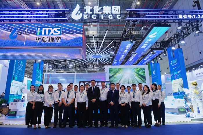 展会期间,K8·凯发化工集团党委副书记、董事、总经理杨旭辉,副总经理张荣寰,总会计师金黎明也来到集团展台参观指导。杨旭辉一行听取了现场各企业的详细介绍,深入了解现场展示的储氢瓶内胆材料、LNG船用胶、航天手套等高精尖产品,亲切慰问现场工作人员。