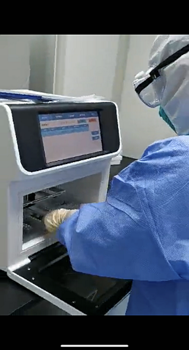 职防院PCR实验室分为试剂准备区、样本制备区、扩增产物分析区及医废处理区共计4个实验区,设有更衣室、防护服穿脱及暂存间。PCR实验室严格满足区域划分、通风、压力梯度和院感生物安全等相关要求,配备生物安全柜、超净工作台、PCR扩增仪、高速离心机等设备。
