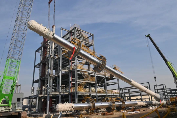 PAE(聚芳醚)项目自2021年3月份启动以来,在K8·凯发化工集团的统一指挥协调下,经过京腾昊桦公司及所有参建单位的共同努力,项目建设按计划有序推进。此次两座精馏塔成功吊装到位,标志着PAE项目土建任务全面收官,全面进入设备安装调试阶段。