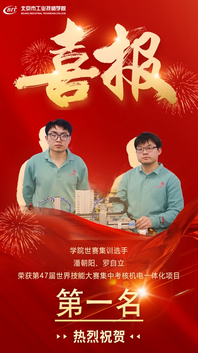3月17日至21日,由中华人民共和国人力资源和社会保障部主办、上海市人力资源和社会保障局承办的第47届世界技能大赛集中考核机电一体化项目在上海举行。技师学院选手潘朝阳、罗自立沉着冷静、配合默契,不畏强手、全力拼搏,在激烈的选拔比赛中取得第一名的优异成绩,进而迎来绽放,锁定里昂、为国出战!
